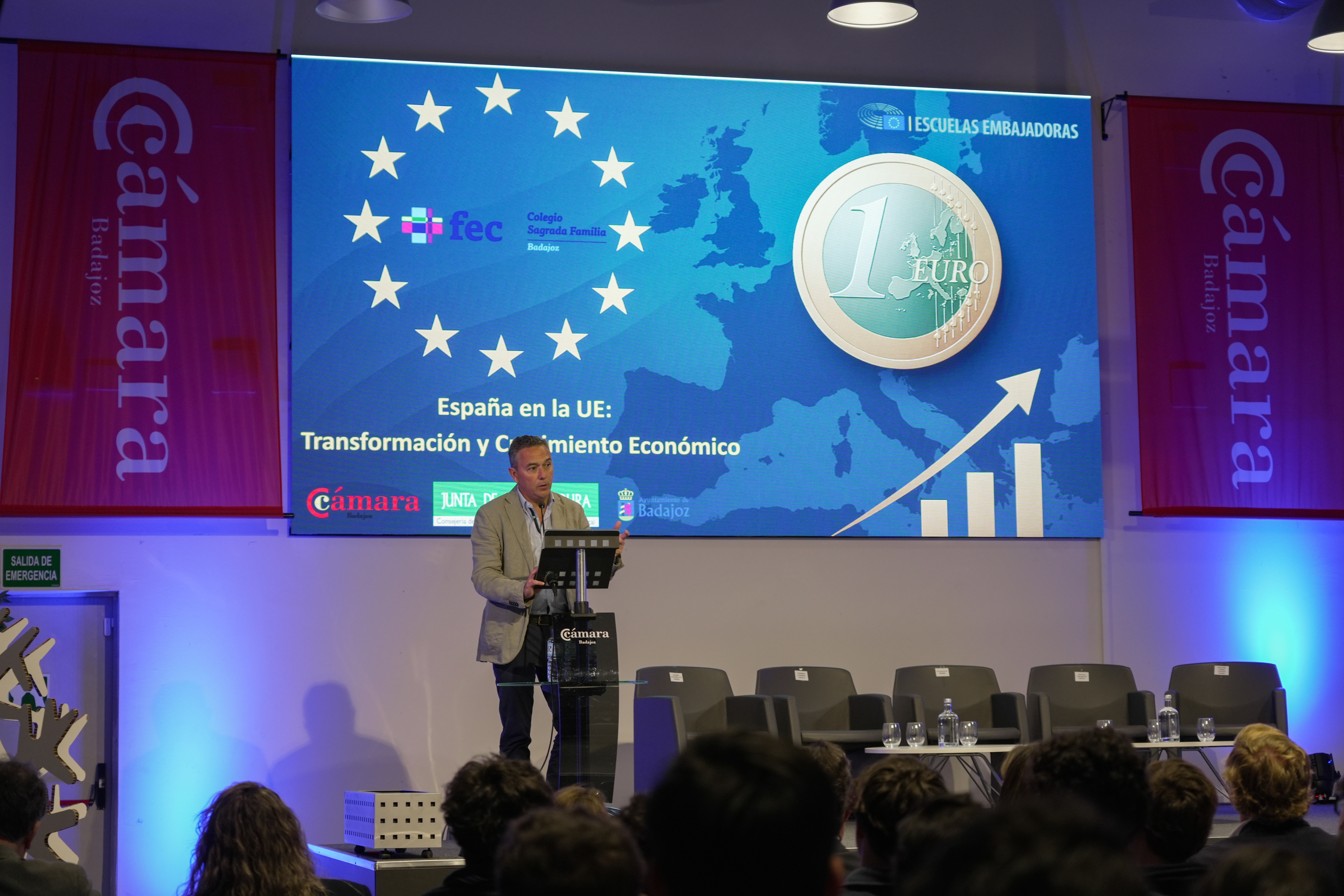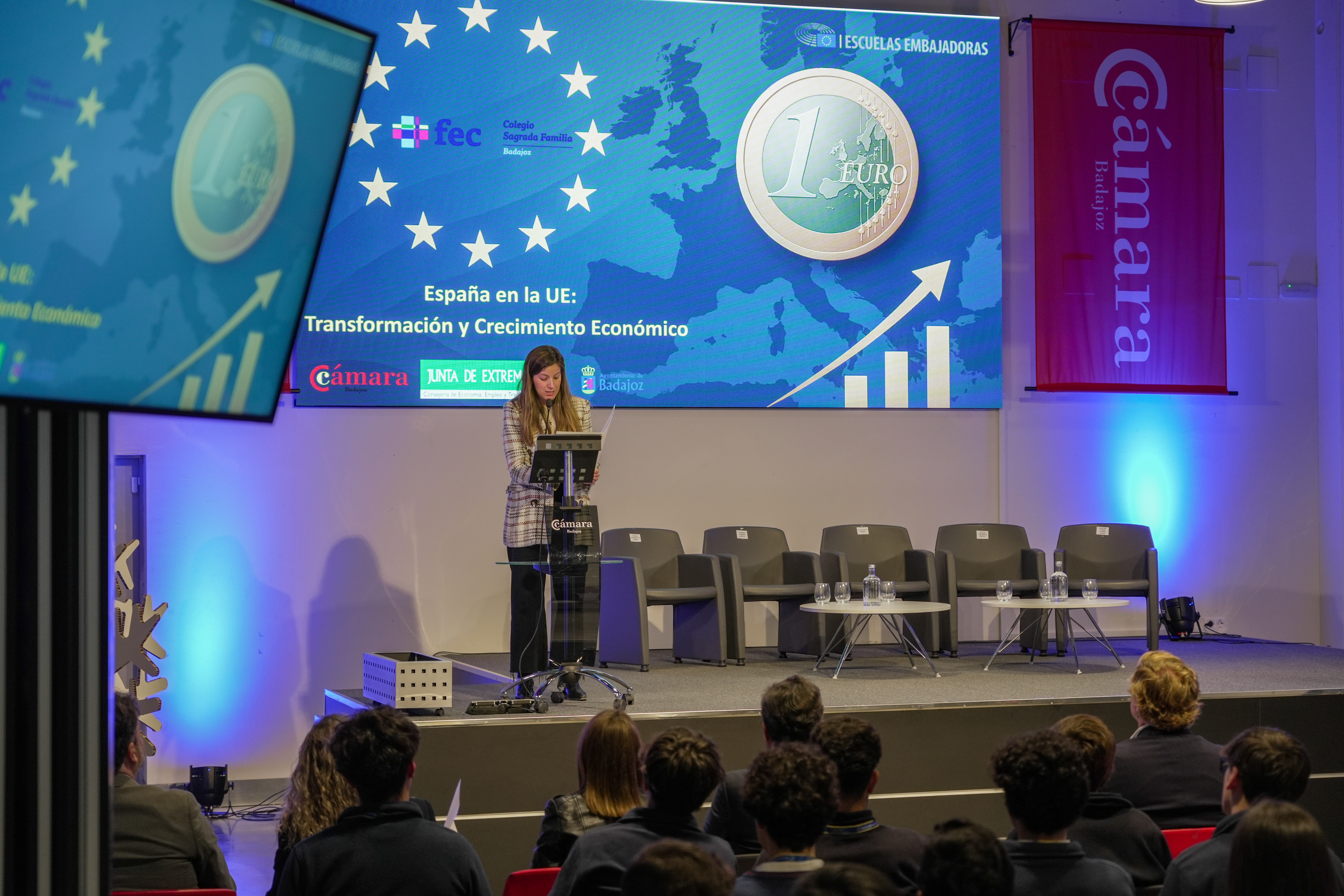 La directora de la Cámara, Sandra Soriano, resaltó el papel de la institución en la gestión de fondos europeos en actividades de formación, digitalización, internacionalización e internacionalización, así como el trabajo desarrollado a través de su Departamento de Proyectos Europeos. Además, destacó que "cada uno de estos alumnos puede tener dentro la chispa del emprendimiento y la posibilidad de crear algo grande, que haga crecer Extremadura y, por qué no, también Europa. Desde la Cámara de Comercio de Badajoz acompañamos a los jóvenes y a las empresas en cada paso".