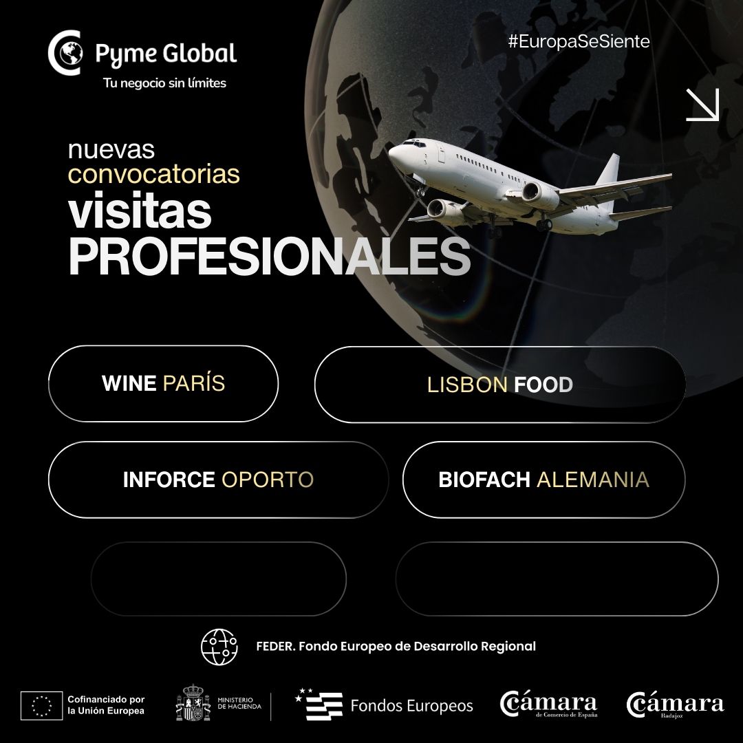 Con este conjunto de actuaciones, la Cámara de Comercio de Badajoz reafirma su compromiso con el crecimiento, la competitividad y la proyección internacional de las empresas extremeñas. Puede accederse a todas estas convocatorias en