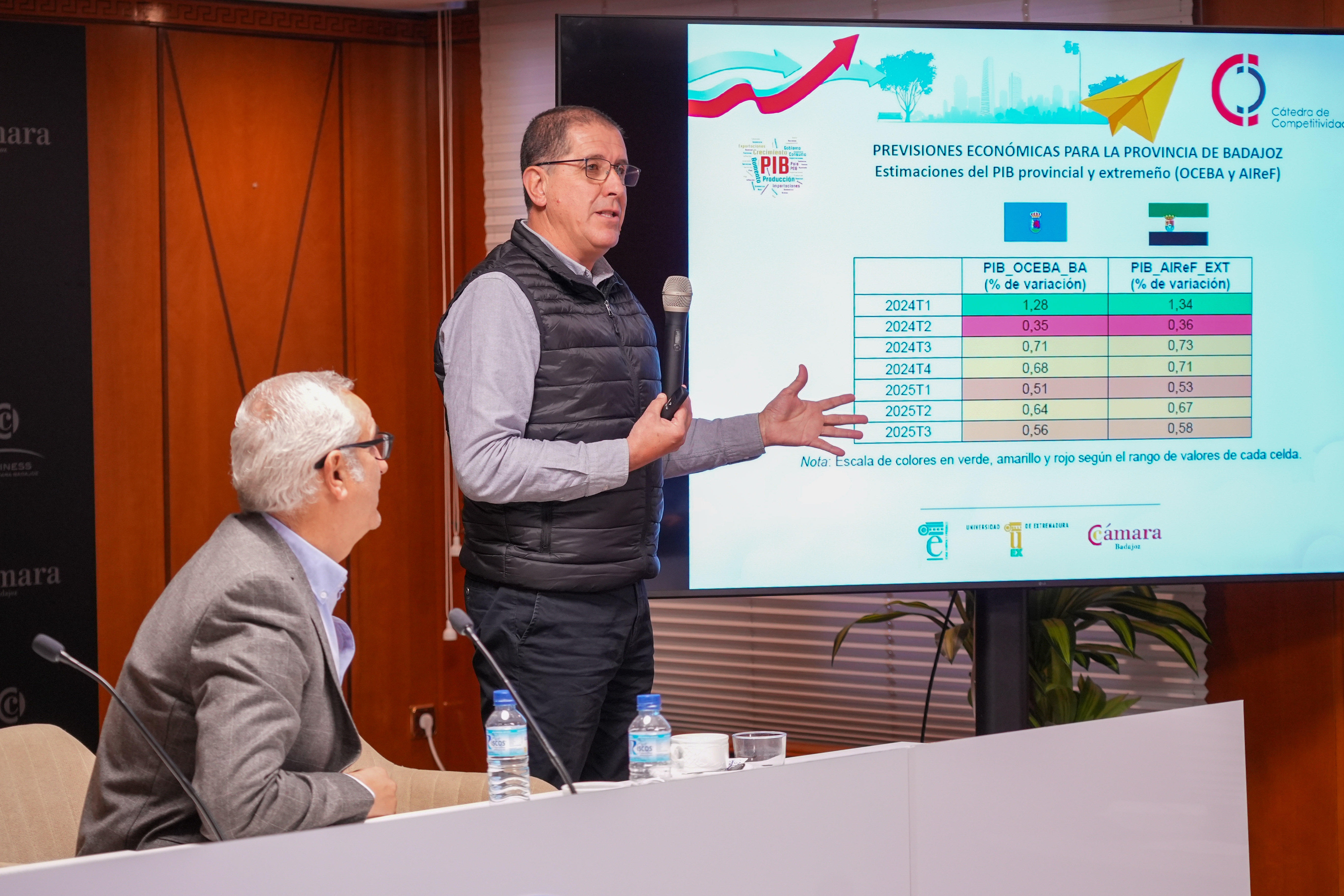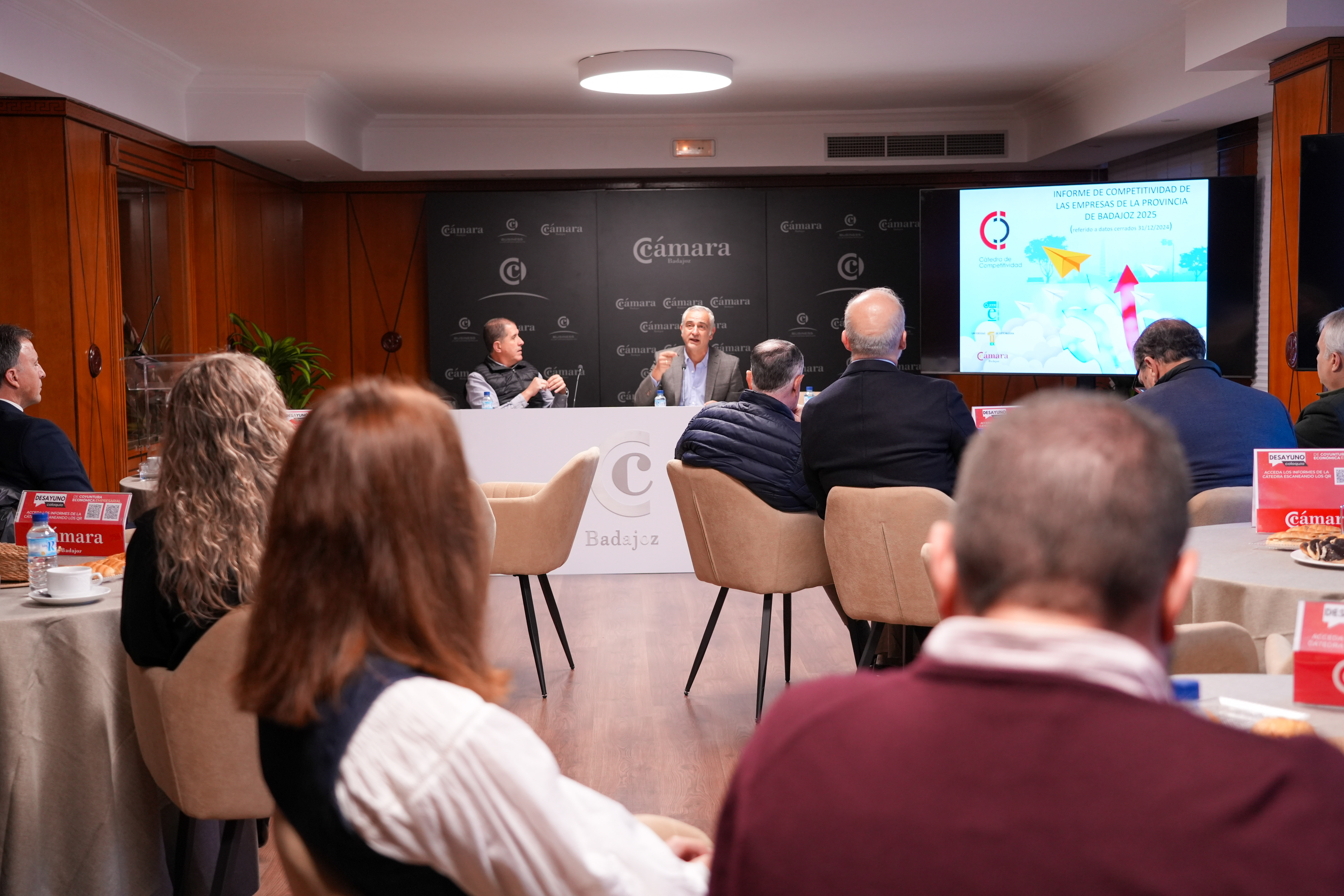 La Cámara de Comercio de Badajoz ha celebrado esta mañana el último Desayuno de Coyuntura Económica y Empresarial, un encuentro que se ha consolidado como un espacio de referencia para el tejido productivo provincial y que, una vez más, ha reunido a empresarios, directivos y representantes institucionales en torno a este análisis económico realizado por expertos de la Universidad con rigor y objetividad.