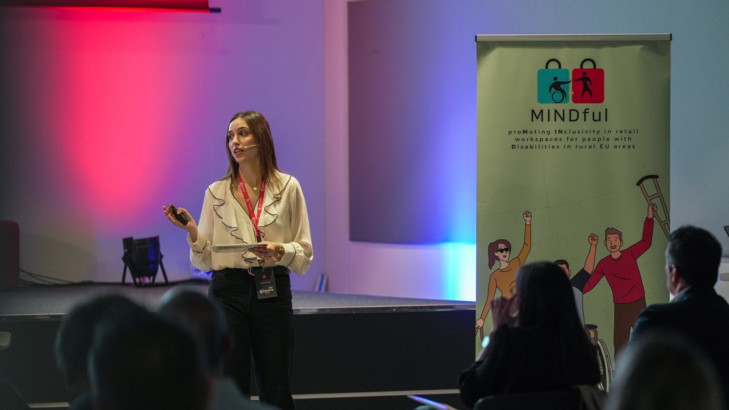 Durante el acto se presentaron los resultados principales del proyecto: un informe de situación sobre la inclusión de personas con discapacidad en el sector minorista; un programa de formación específico para ayudar a los minoristas rurales a reclutar y acompañar a trabajadores con discapacidad; y la plataforma online MINDful, que reúne recursos, materiales didácticos y herramientas prácticas para favorecer entornos laborales inclusivos.