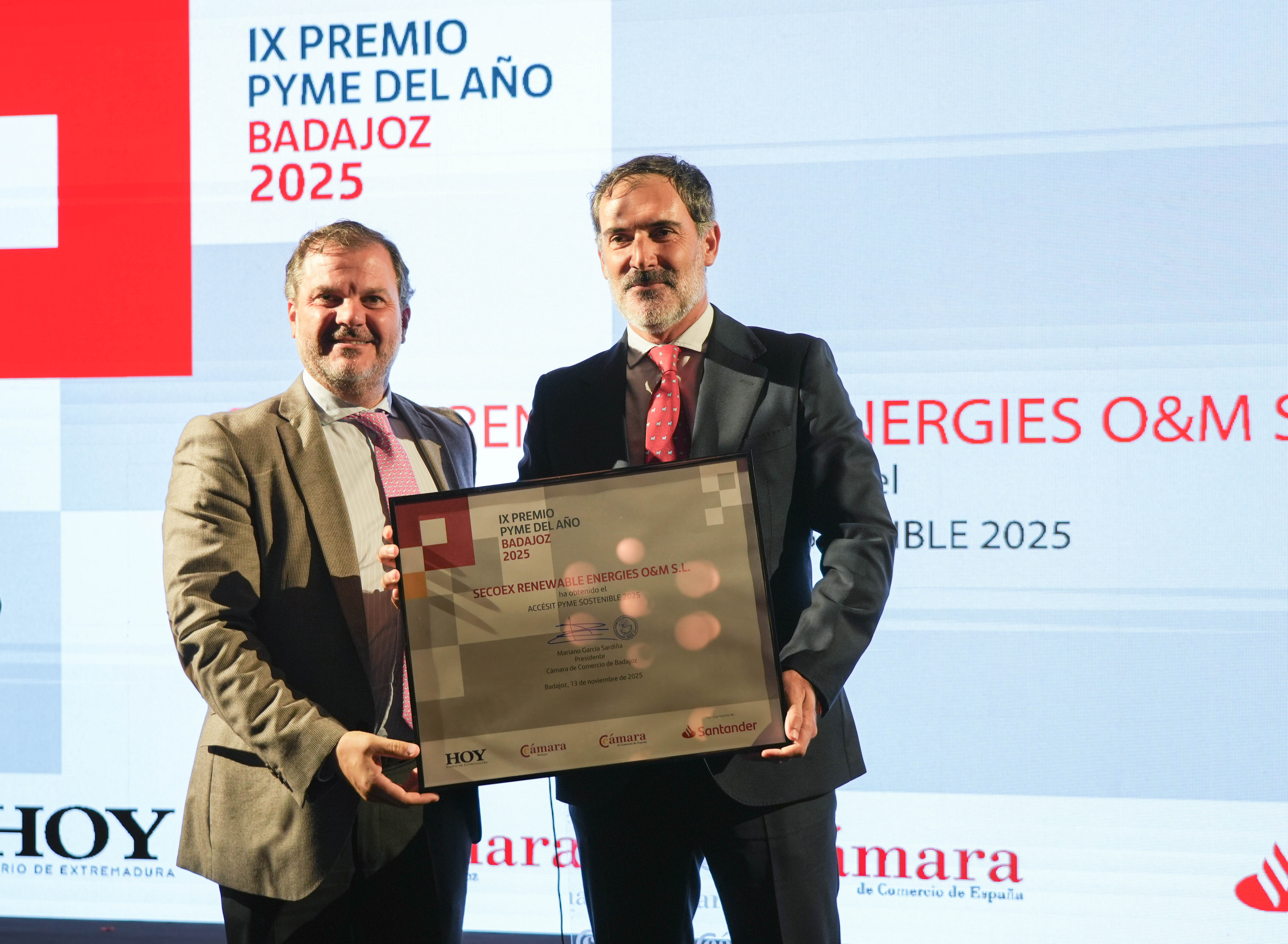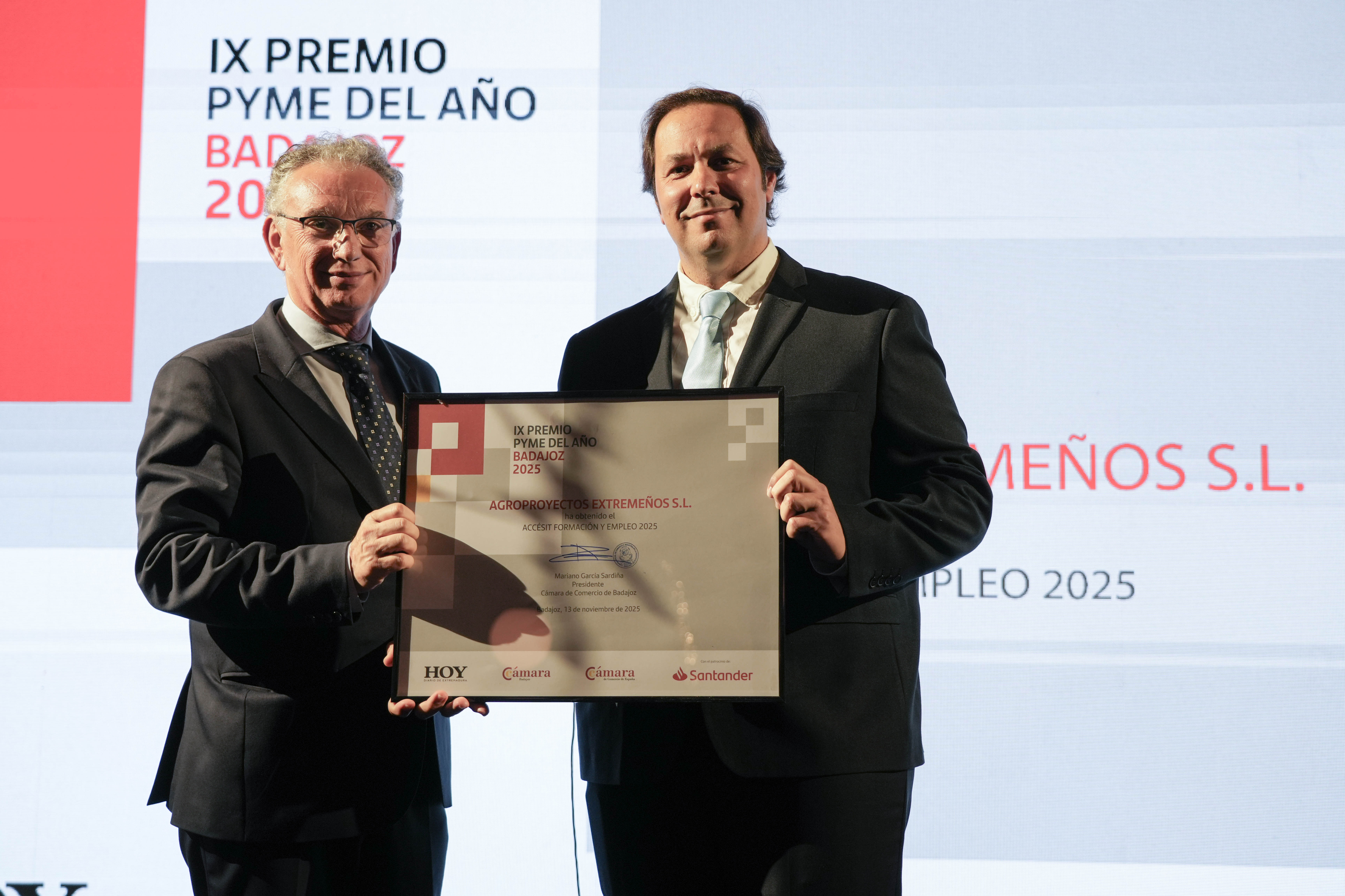 La empresa Metal Frame Renovables ha recibido hoy el Premio Pyme del Año 2025 de Badajoz, un galardón que conceden el Banco Santander y la Cámara de Comercio de Badajoz, en colaboración con la Cámara de España y el diario HOY.